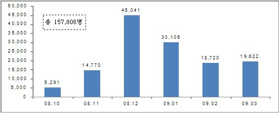 | ▲ 월별 비정규직 해고상황 (자료: 日本厚生労働省(2009)) |
